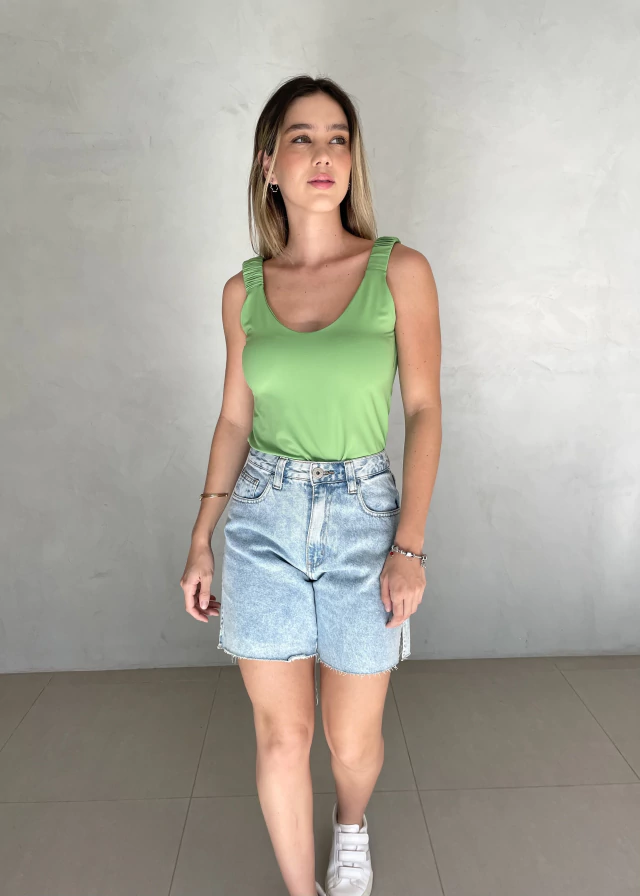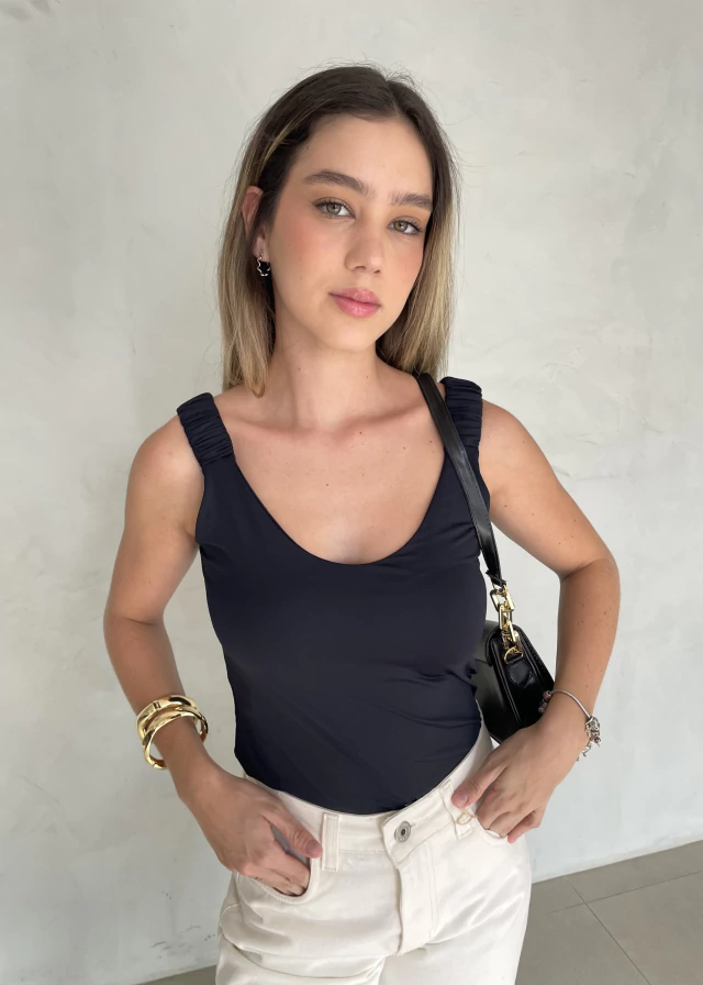 O Body Alça Detalhada Lidia é confeccionado em malha de alta qualidade, com toque macio e caimento ajustado que valoriza a silhueta. Seu decote em “U” traz delicadeza, enquanto as alças largas com detalhe franzido adicionam charme e modernidade à peça.