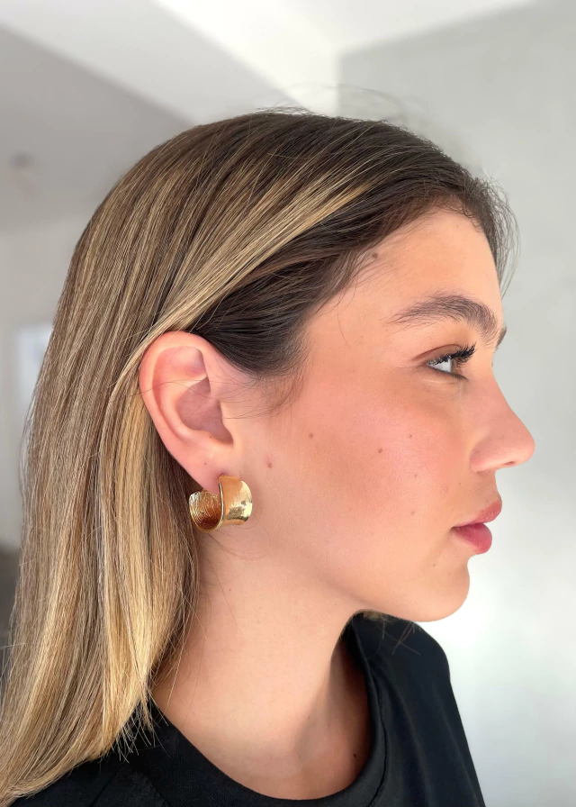 O Brinco traz um visual minimalista e impactante, ideal para quem aposta na sofisticação dos detalhes. Com acabamento polido e formato bold, é aquele acessório curinga que transforma qualquer look com elegância.